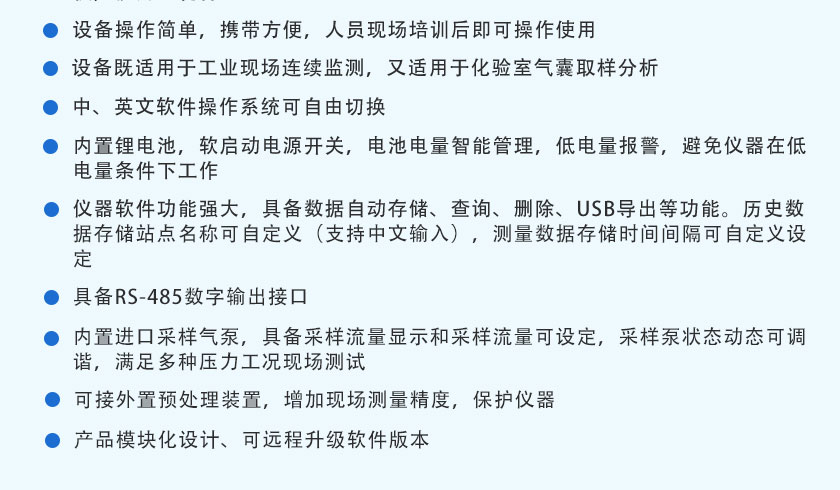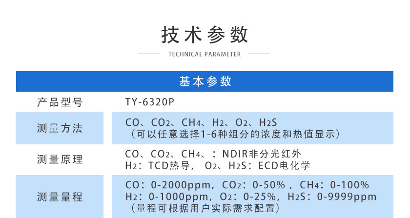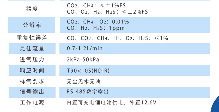 CO、CO2、CH4:NDIR非分光紅外;H2:TCD熱導(dǎo);O2、H2S:ECD電化學(xué) |