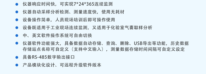 (7)儀器響應(yīng)時間快,可實(shí)現(xiàn)7*24*365連續(xù)監(jiān)測。