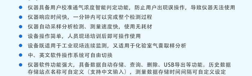 (11)設(shè)備既適用于工業(yè)現(xiàn)場連續(xù)監(jiān)測,又適用于化驗(yàn)室氣囊取樣分析。